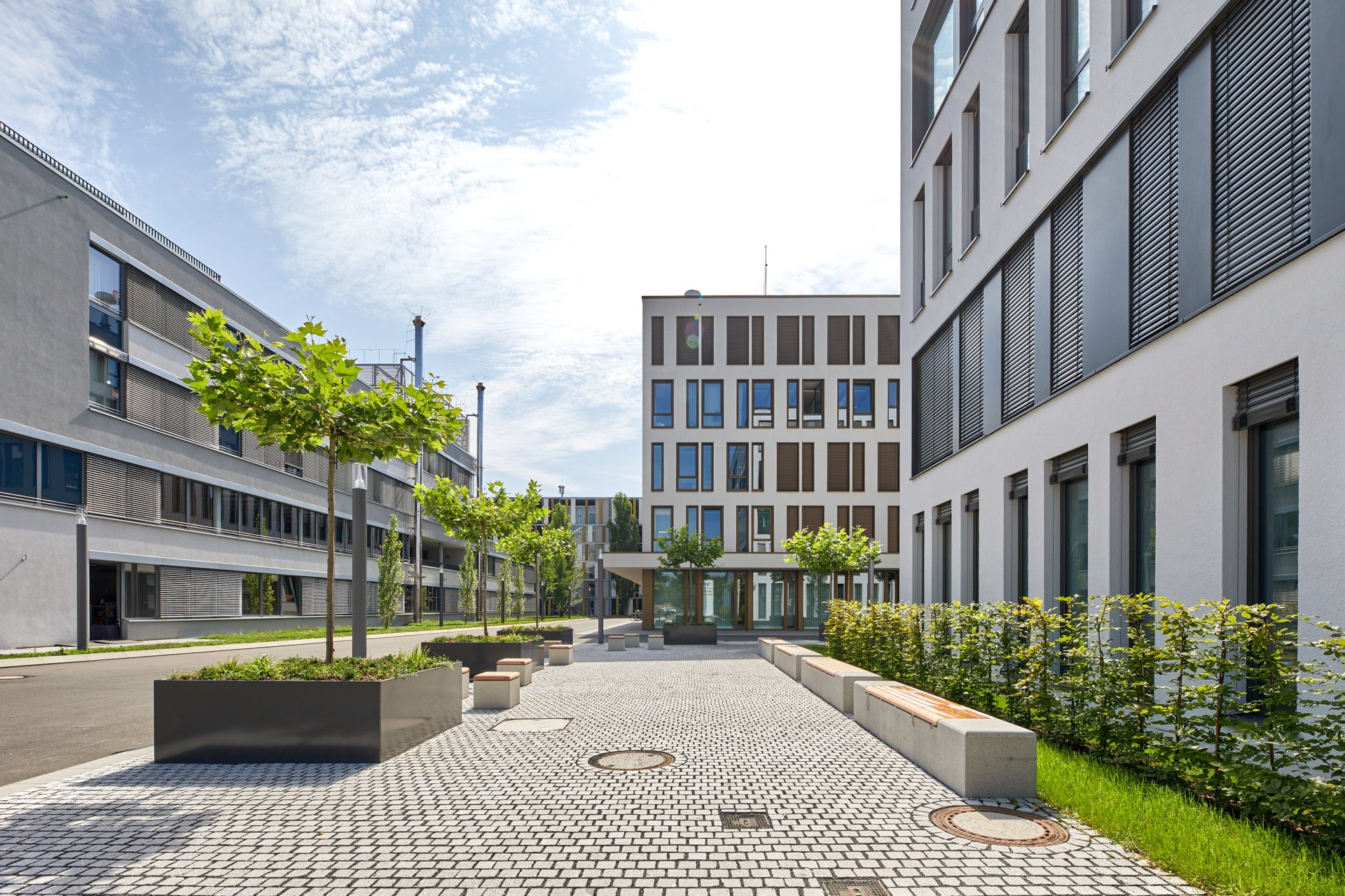 - Nachhaltigkeit: es wird besonderen Wert auf Nachhaltigkeit, energiesparende Technologien, grüne Baukonzepte, umweltfreundliche Materialien und ansprechende Grünflächen als Erholungs- und Begegnungsorte gelegt.